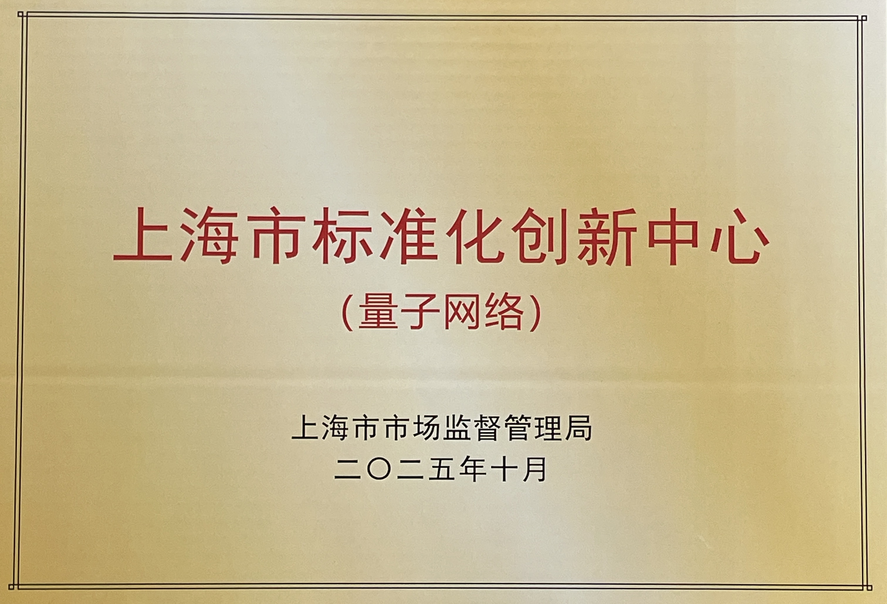 2025年9月获批上海市标准化创新中心(量子网络)