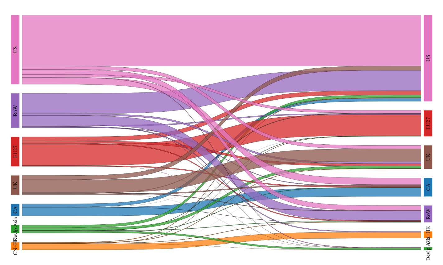 Intra-country/region and cross-country/region flows of VC investment values (2012-2024)