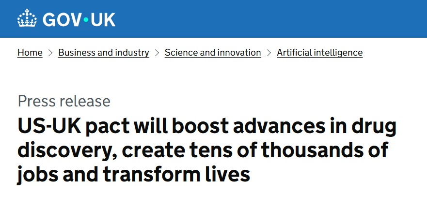 原文链接:https://www.gov.uk/government/news/us-uk-pact-will-boost-advances-in-drug-discovery-create-tens-of-thousands-of-jobs-and-transform-lives