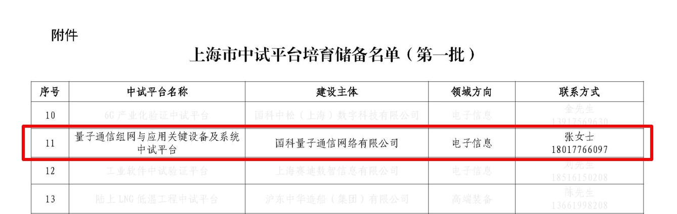 产业动态 | 发布时间:2026-02-26 | 阅读:398 次日前,上海市经信委公布了上海市第一批中试平台培育储备名单,国科量子公司打造的“量子通信组网与应用关键设备及系统中试平台”成功入选,并经上海市推荐,被工信部认定为国家级平台,成为量子信息科技未来产业发展的重要支撑和创新资源供给。